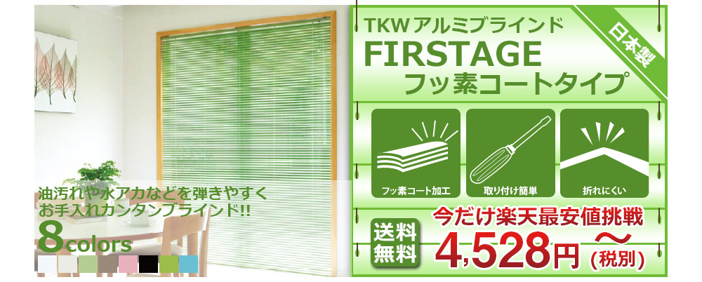 お手入れを重視する方にはこちら。フッ素コートタイプは油汚れや水アカがつきにくく、汚れがついた場合もサッとひとふき。お掃除がしやすいブラインドです。