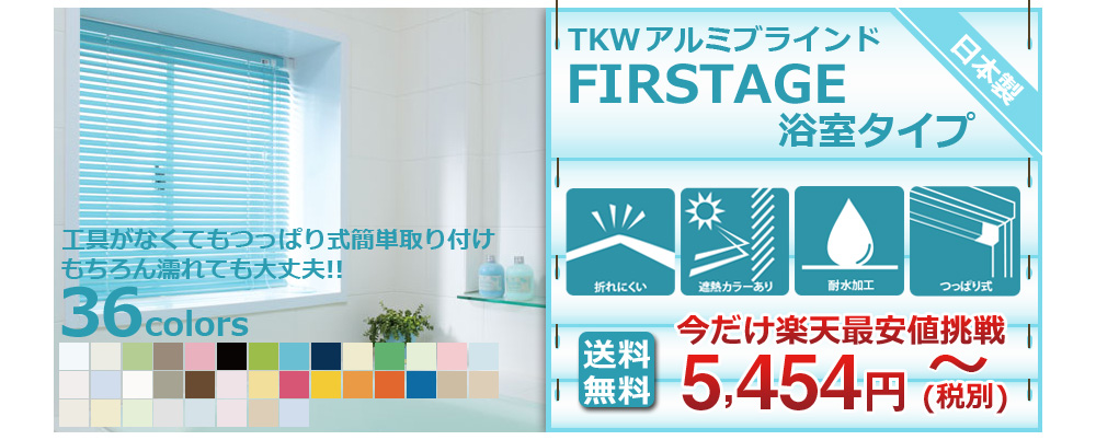 こちらも「つっぱり式」で取り付けできるようになっているブラインドで、水に濡れてもスラット(羽)がくっつきにくい構造になっています。
