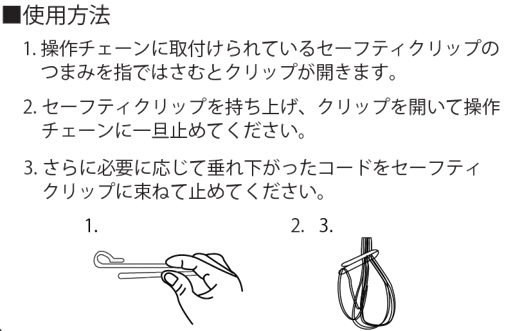 ※同梱のセーフティクリップは、長く垂れ下がった操作チェーンを束ね、