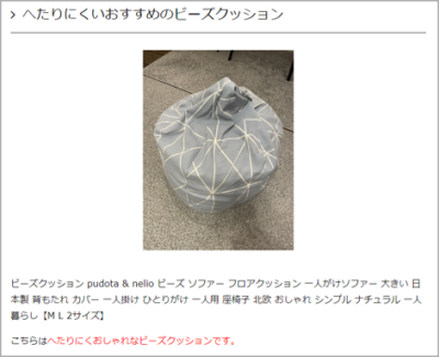 記事では、「へたりにくいおすすめのビーズクッション」として紹介してくださいました。