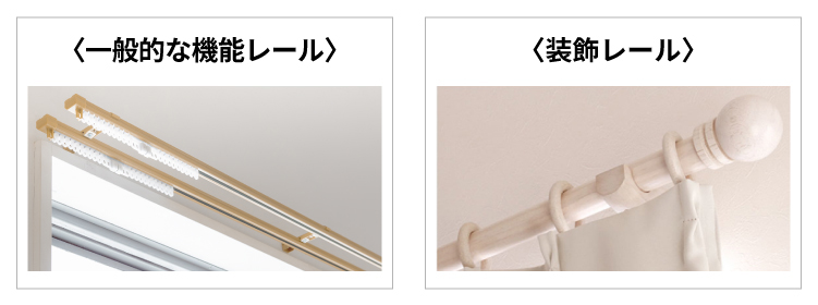 画像のように、レールは【機能レール】と【装飾レール】の2種類があります。それぞれ窓によっても測り方が変わってきますのでご注意ください。