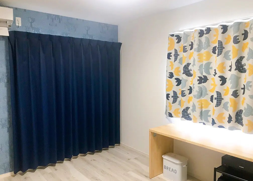 こちらは、コンセントの位置やカーテンレールの数、窓からの冷気対策など、ご希望に合わせてお部屋にぴったりのカーテンをご注文いただいた実例です。カーテン選びでは、デザインだけでなく、暮らしを豊かにする機能を兼ね備えたカーテンを選ぶことも大切ですね。