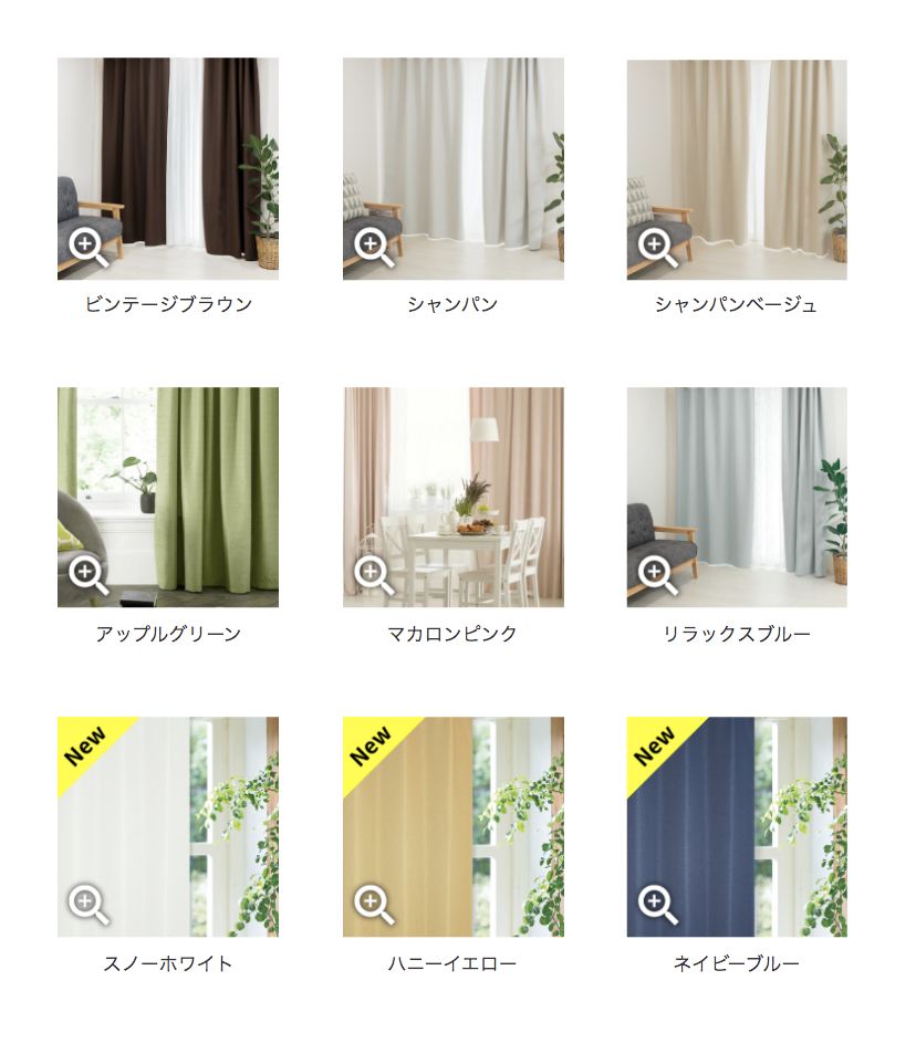 デザイン・機能・素材のバリエーションが豊富なのが特徴で、好みの組み合わせで自分だけのオーダーメイドカーテンが作れます。