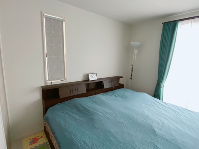 こちらは、寝室の窓に取り付けたロールスクリーン。今回ご紹介したものと同じく【つっぱりタイプ】で、お客様からは「他ではなかなかなく、かつデザインも素敵で特に迷わず購入に至りました。