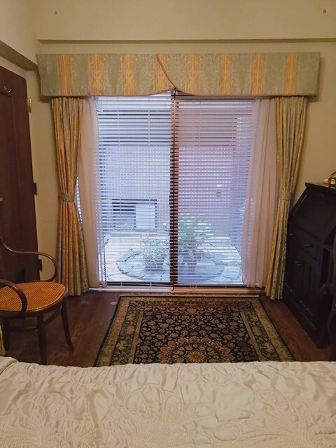今回は、カーテンとの組み合わせです。とても格調の高い重厚なカーテンで、お部屋にあるインテリアもそんな雰囲気のものが多いですが、ウッドブラインドもそこになじんでいます。