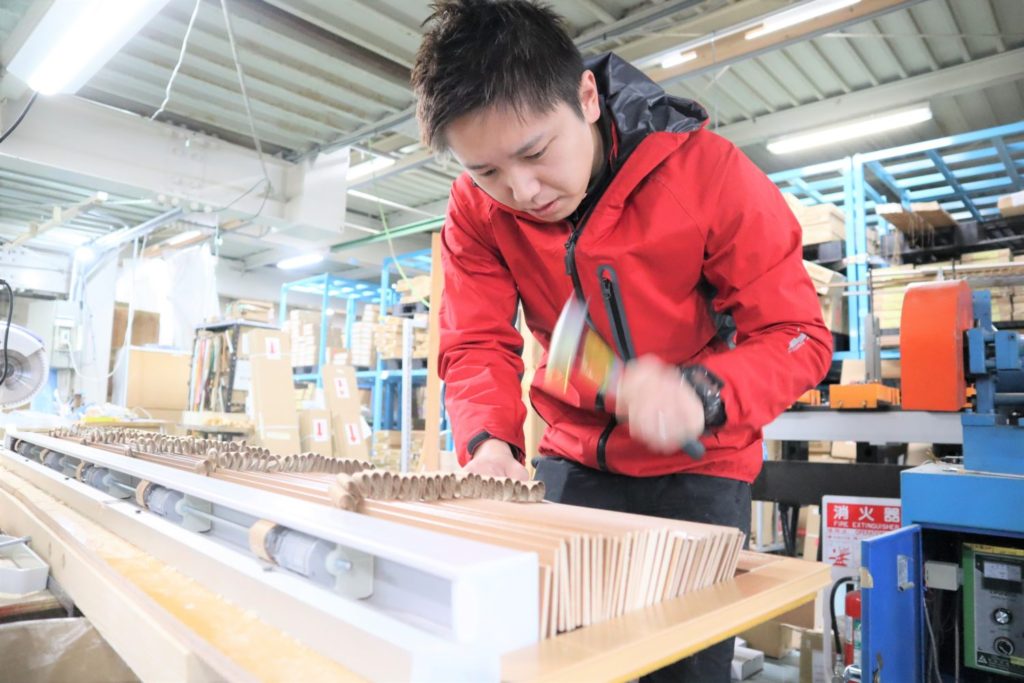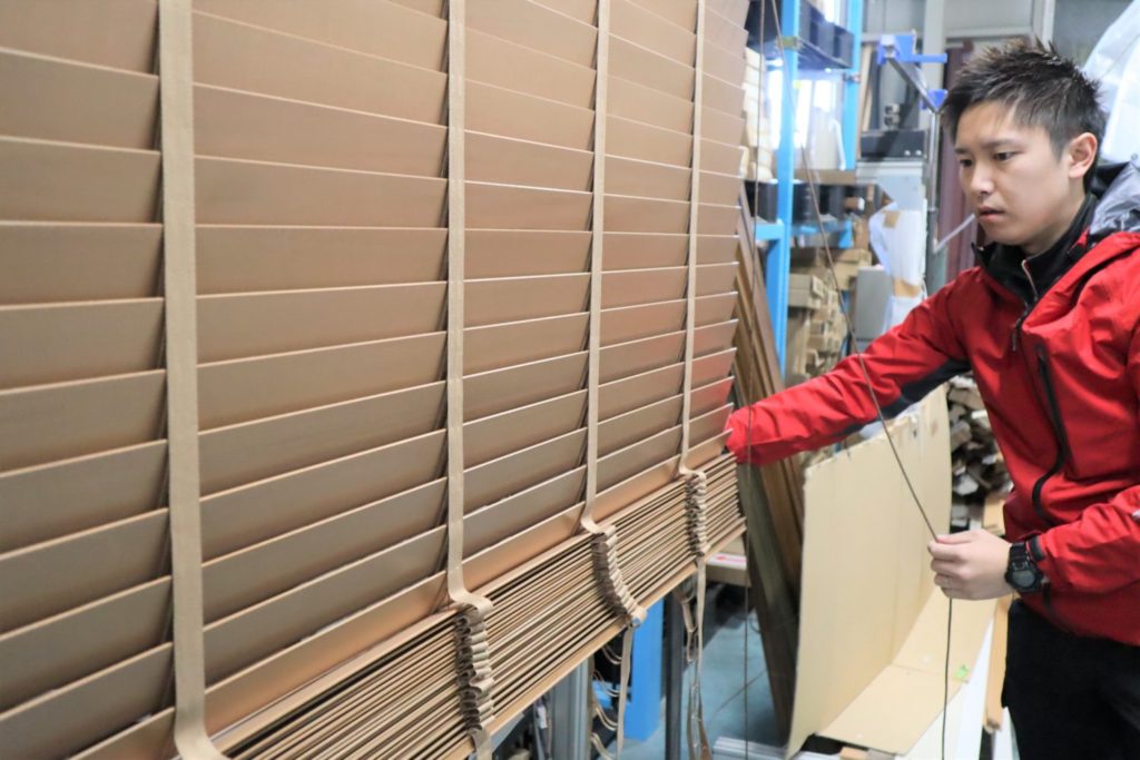 ウッドブラインドを製作しているのは、プロダクト課の江戸一真。